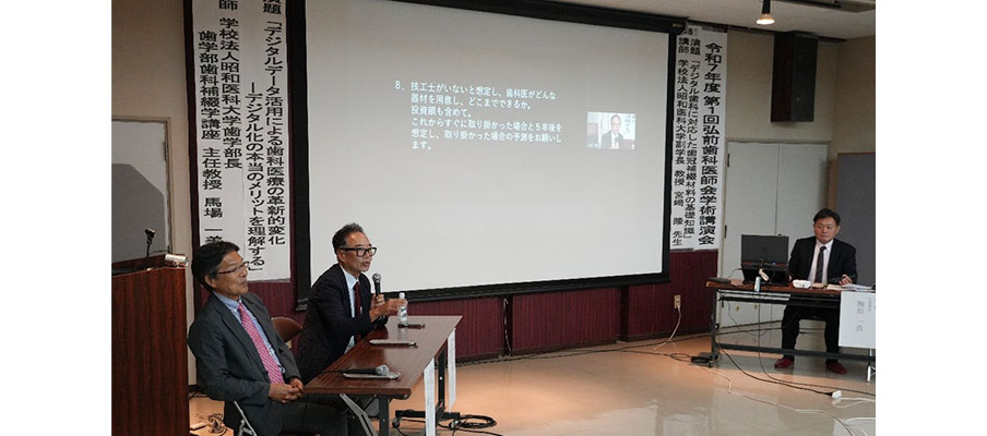 近年保険適用された被せものに使用する各種歯科材料に関して、また国策として医療DXが推進されていますが、口腔内スキャナーやコンピュータを用いての技工物製作支援など歯科治療における昨今のデジタル技術の応用についてご講演いただきました。