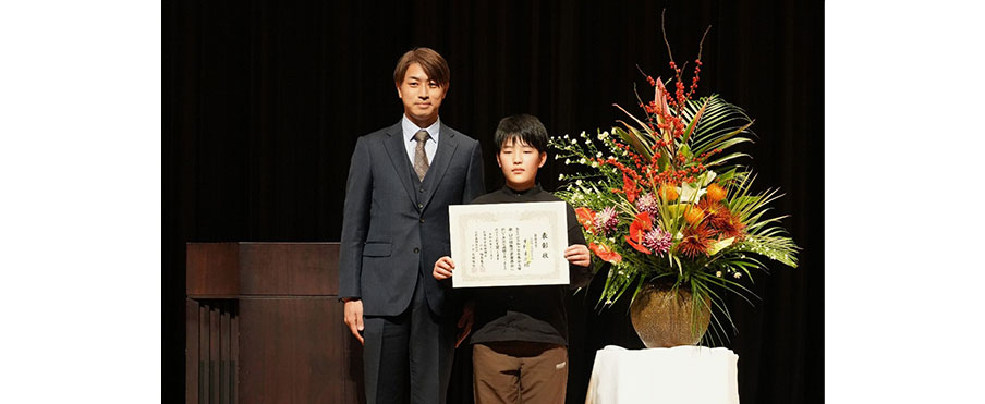 毎年実施されている【 歯・口の健康児童 表彰 】本年度の最優秀賞には弘前市立大成小学校 6年 木村 幸之祐 さん、弘前市立新和小学校 6年 金田 すず さん のお二人が選ばれ、ご来場いただいた木村さんには遠藤 寛副大会長より、表彰状が授与されました。